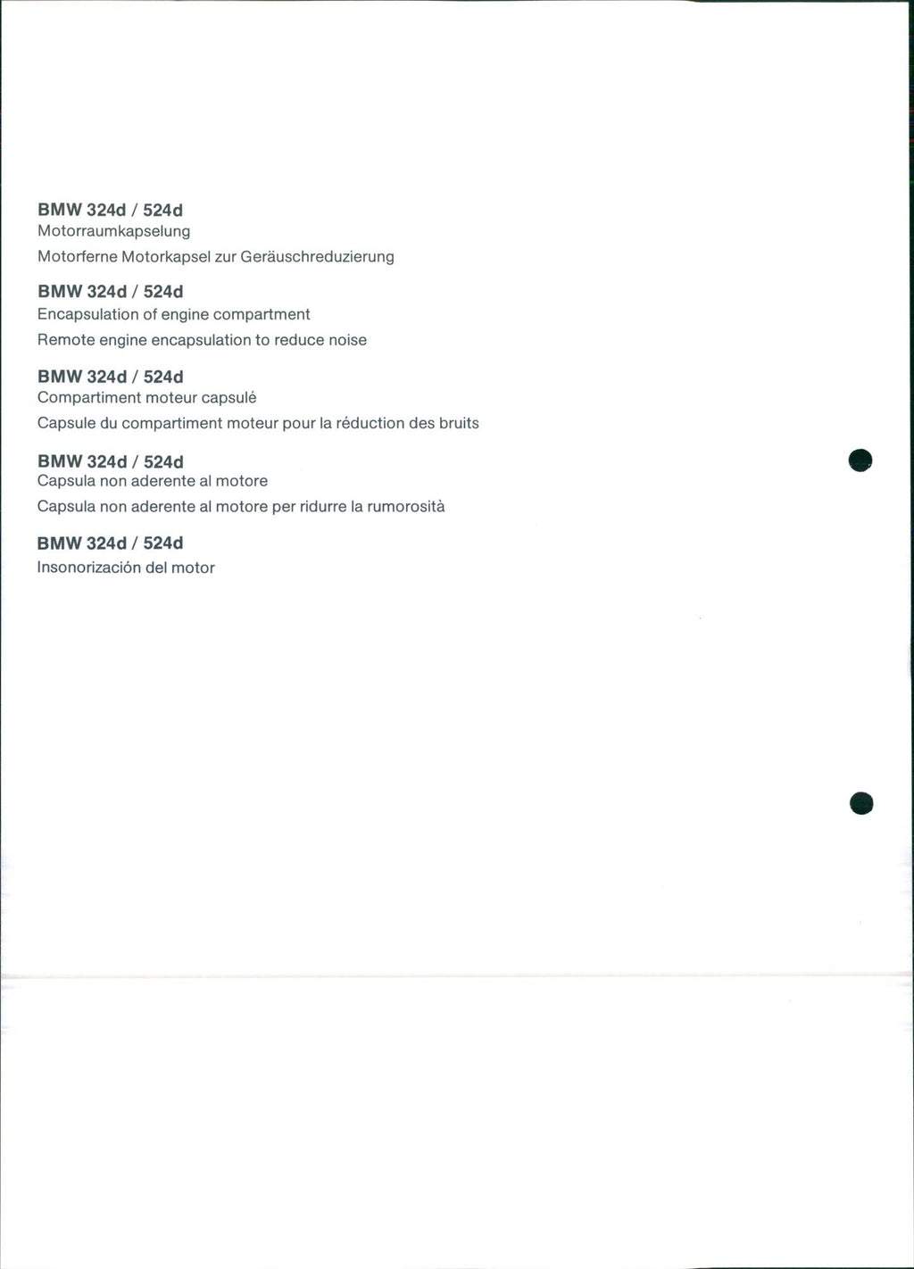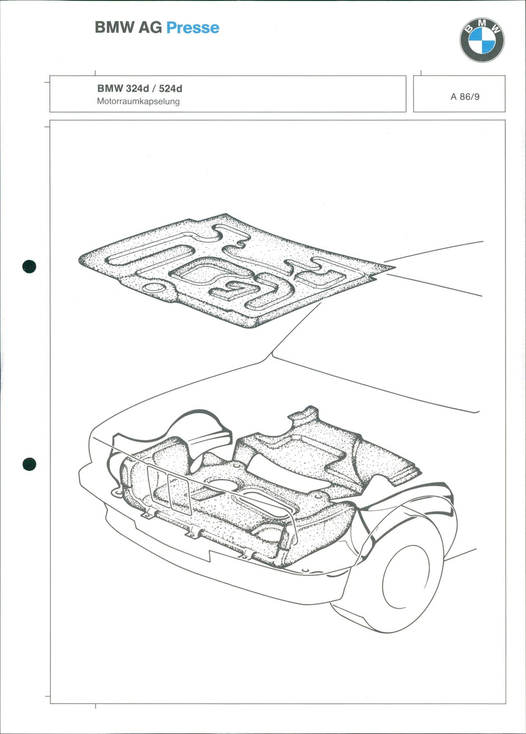 BMW 324d / 524d. Encapsulation of engine compartment. Remote engine encapsulation to reduce noise.