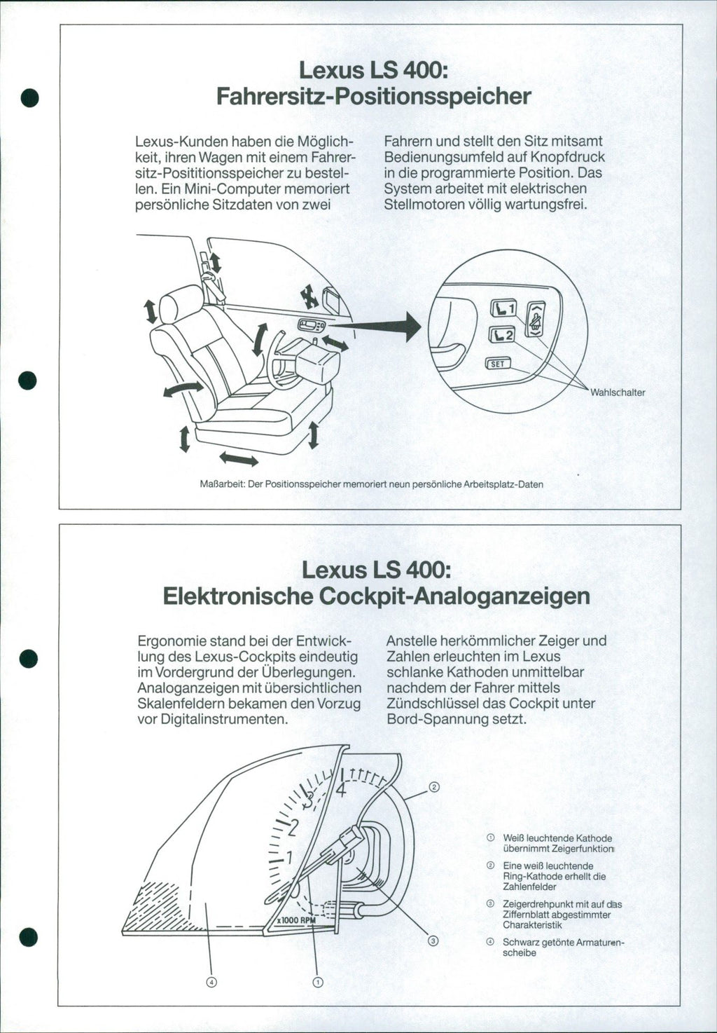 Lexus LS 400: driver seat position memory. Electronic cockpit analog displays.