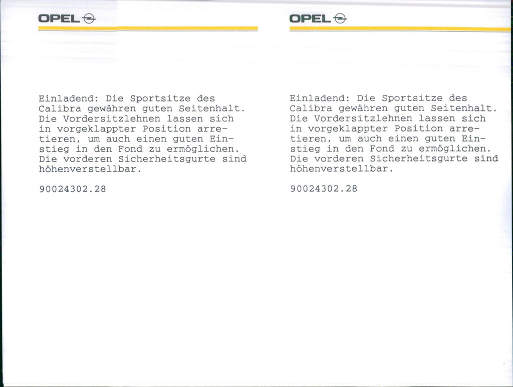1990 Opel Calibra, The sports seats of the Calibra guarantee good lateral support. The front seat backrests can be locked in the folded position to enable a good entry into the rear.
