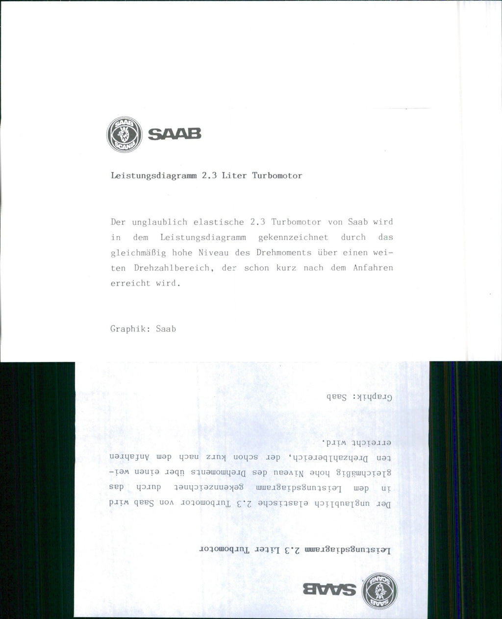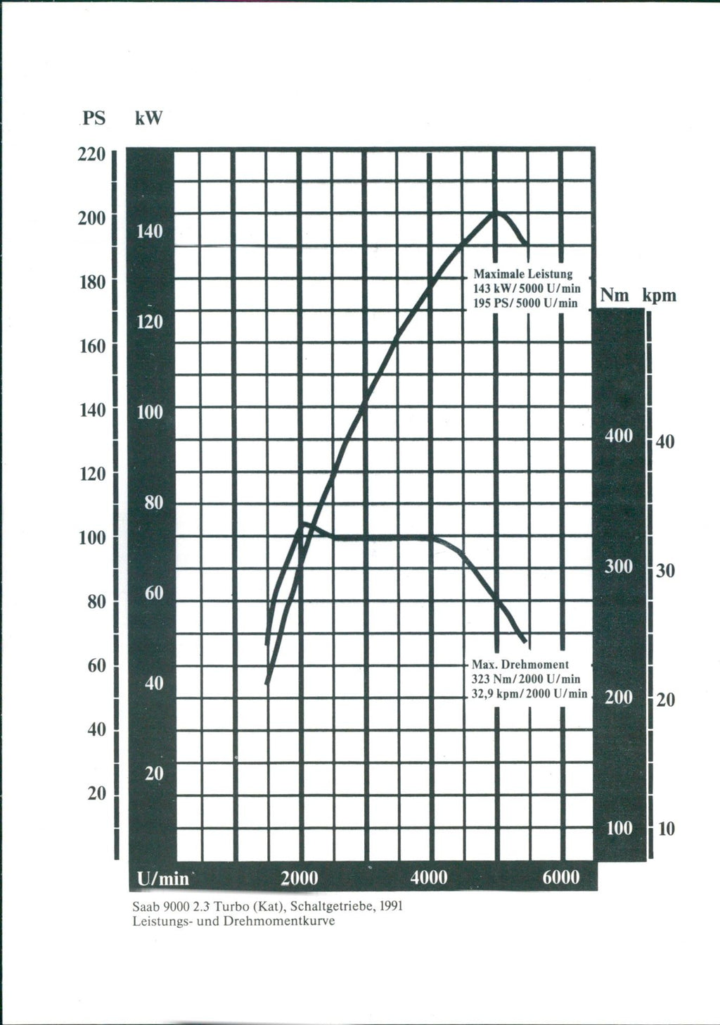 Performance diagram 2.3 liter turbo engine. The incredibly elastic 2.3 turbo engine from Saab is characterized in the performance diagram by the consistently high level of torque over a white speed range that is reached shortly after starting.