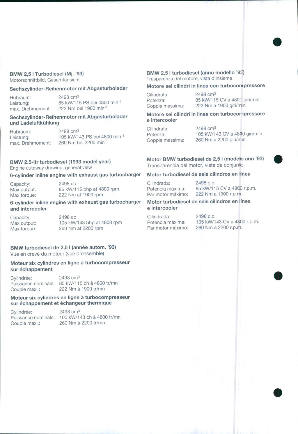 1993 BMW 2.5 litre turbo-diesel, engine cutaway drawing, general view.