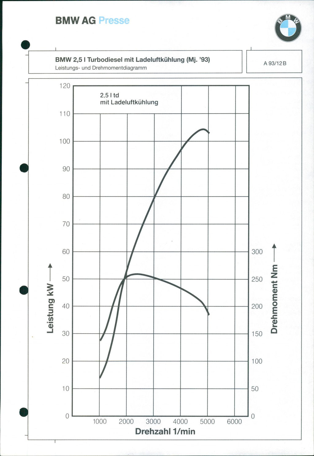1993 BMW 2.5-ltr turbo-diesel with inter-cooler, output and torque diagram.