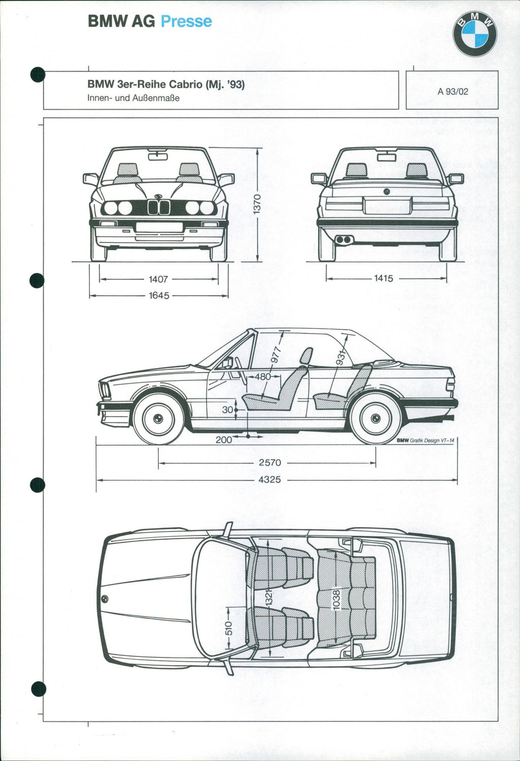 BMW 3 Series Convertible (1993 model year) Interior and exterior dimensions.
