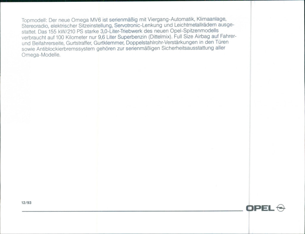 1994 Opel Omega MV6 - Vintage Photograph
