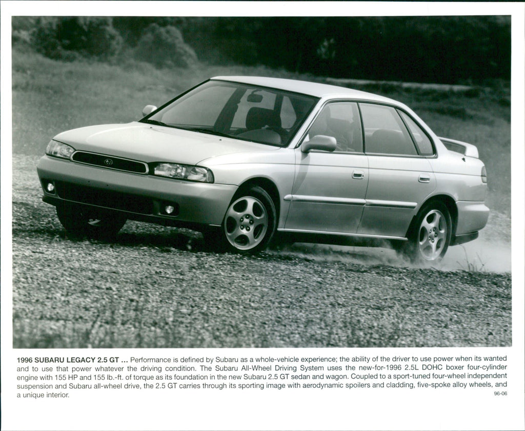 Performance is defined by Subaru as a whole-vehicle experience; the ability of the driver to use power when its wanted and to use that power whatever the driving condition. The Subaru All-Wheel Driving System uses the new-for-1996 2.5L DOHC boxer four-cylinder engine with 155 HP and 155 lb.-ft. of torque as its foundation in the new Subaru 2.5 GT sedan and wagon.