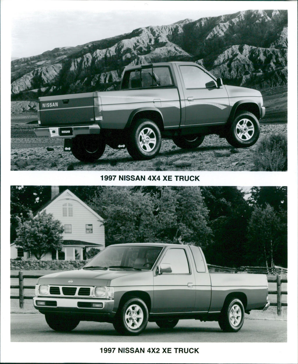 1997 Nissan 4x4 XE truck and 1997 Nissan 4x2 XE truck - Vintage Photograph