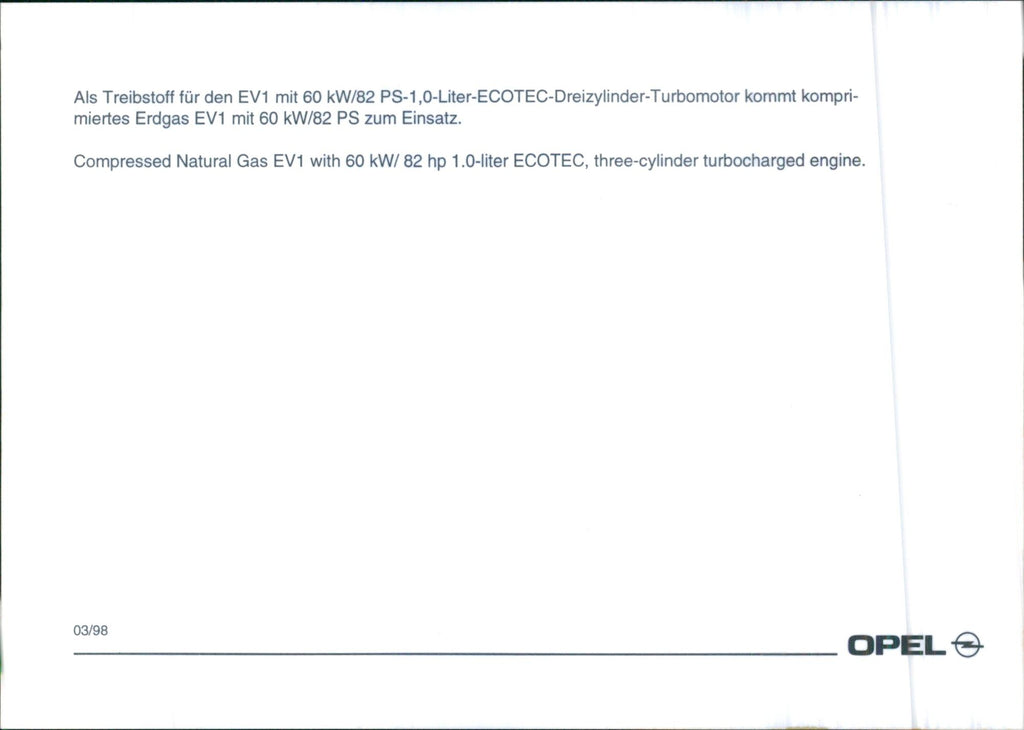 Compressed Natural Gas EV1 with 60 kW/ 82 hp 1.0-liter ECOTEC, three-cylinder turbocharged engine.