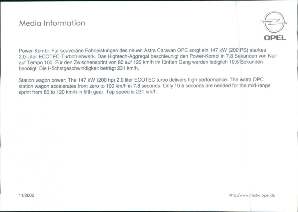 2002 Opel Astra OPC Station Wagon - Vintage Photograph