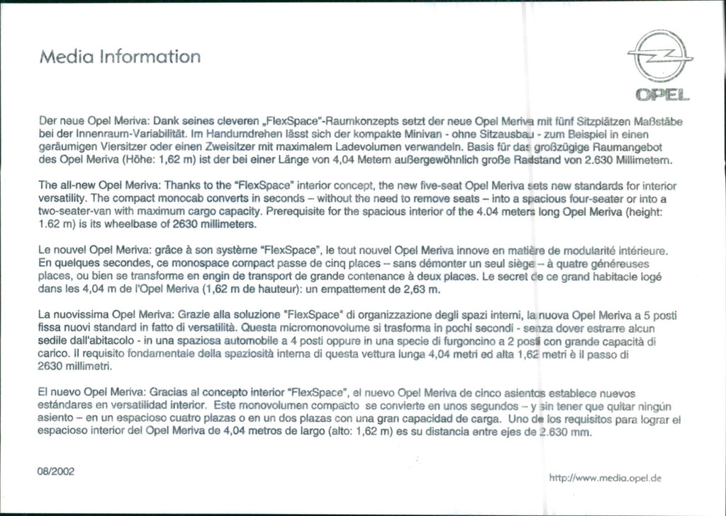 The new Opel Meriva: Thanks to its clever "FlexSpace" room concept, the new Opel Meriva with five seats sets new standards in interior variability.