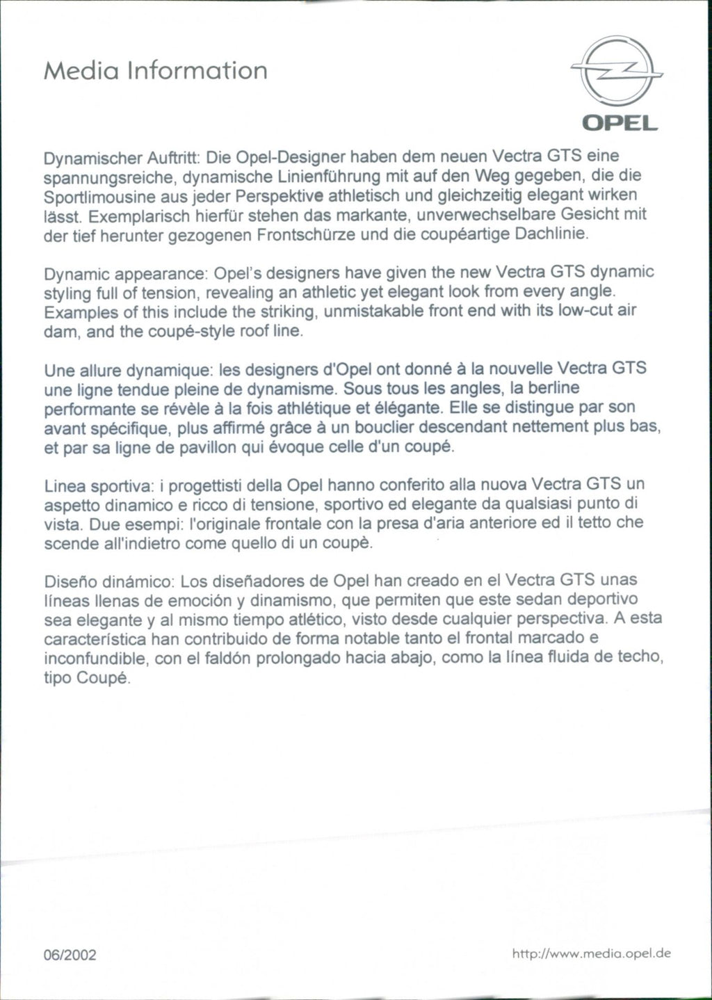 Dynamic appearance: Opel's designers have given the new Vectra GTS dynamic styling full of tension, revealing an athletic yet elegant look from every angle. Examples of this include the striking, unmistakable front end with its low-cut air dam, and the coupé-style roof line.