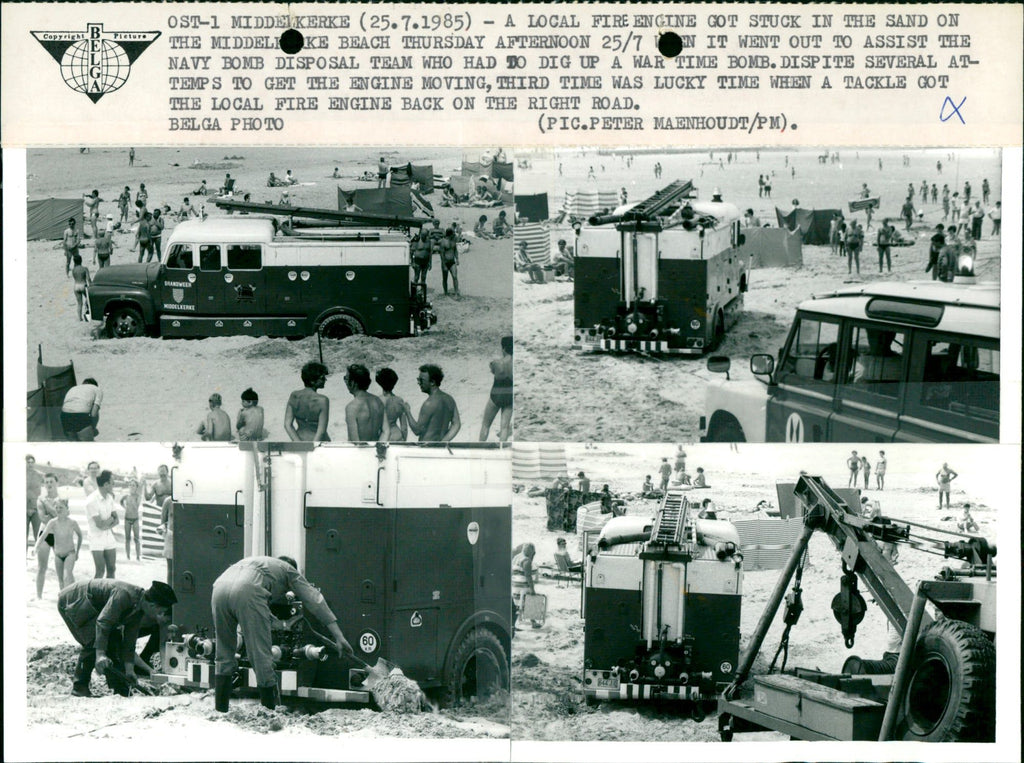 A local firetruck got stuck in the sand on the Middelkerke beach