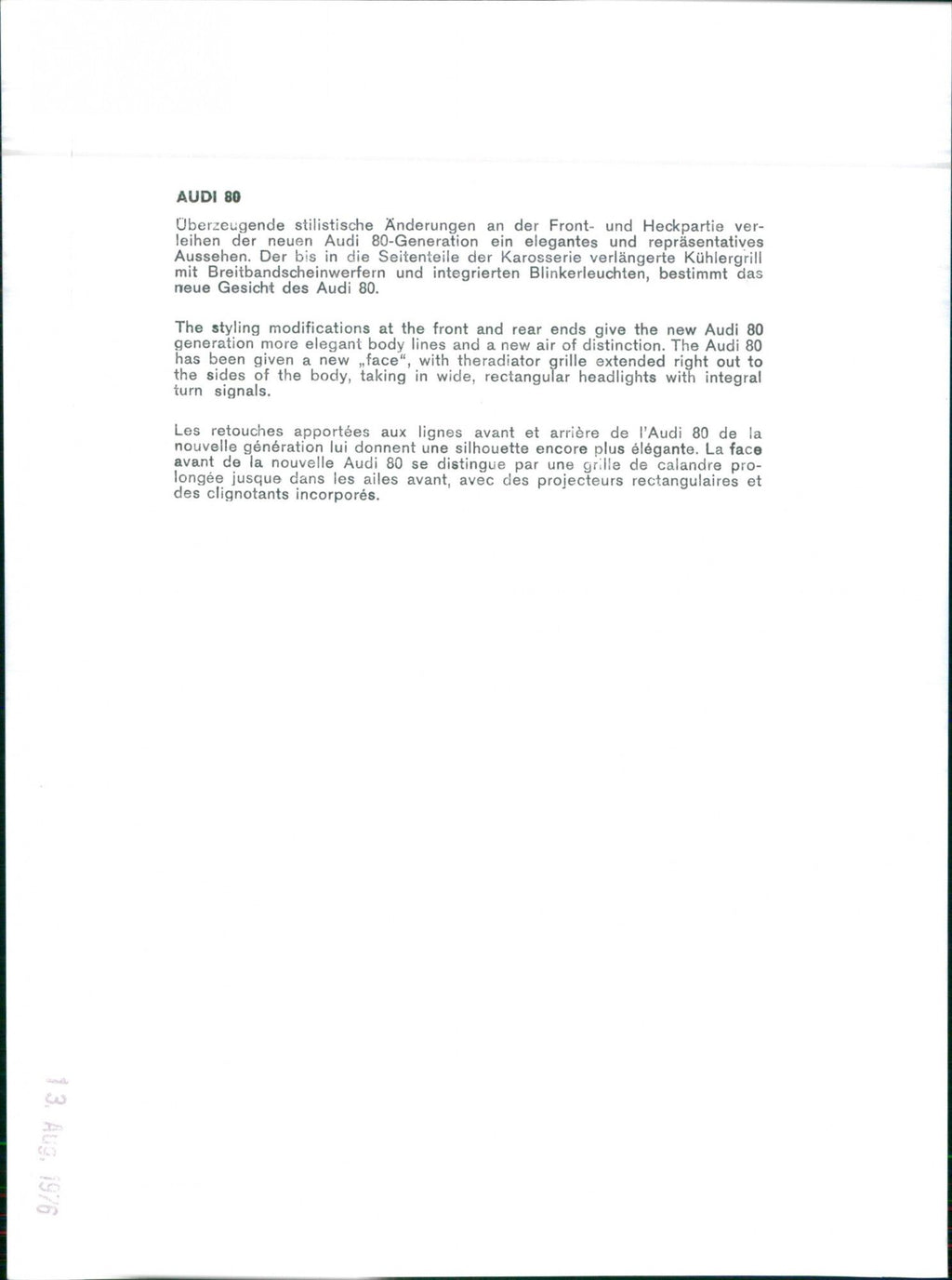 The styling modifications at the front and rear ends give the new Audi 80 generation more elegant body lines and a new air of distinction.