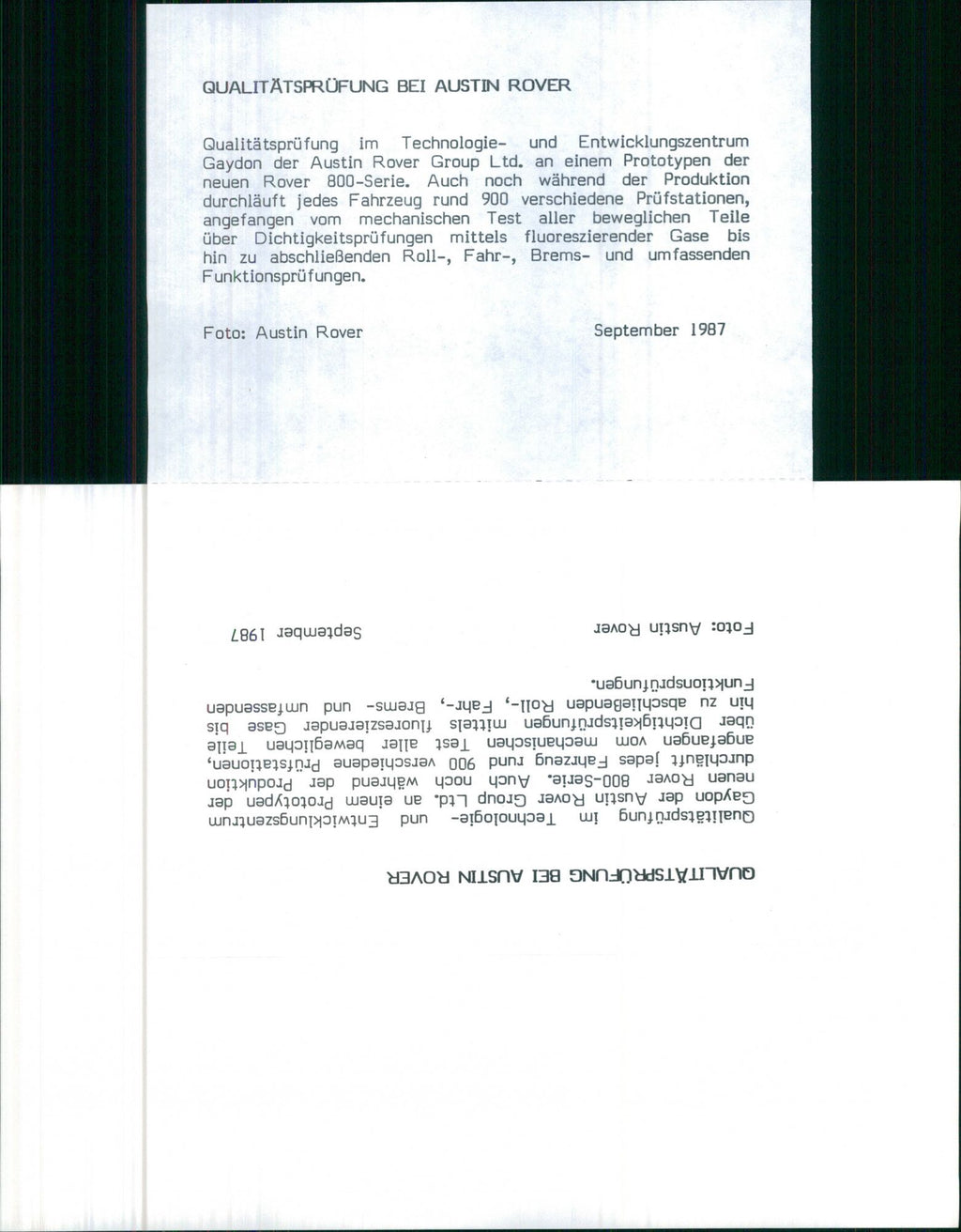 Austin Rover, 1987 , Quality Inspection