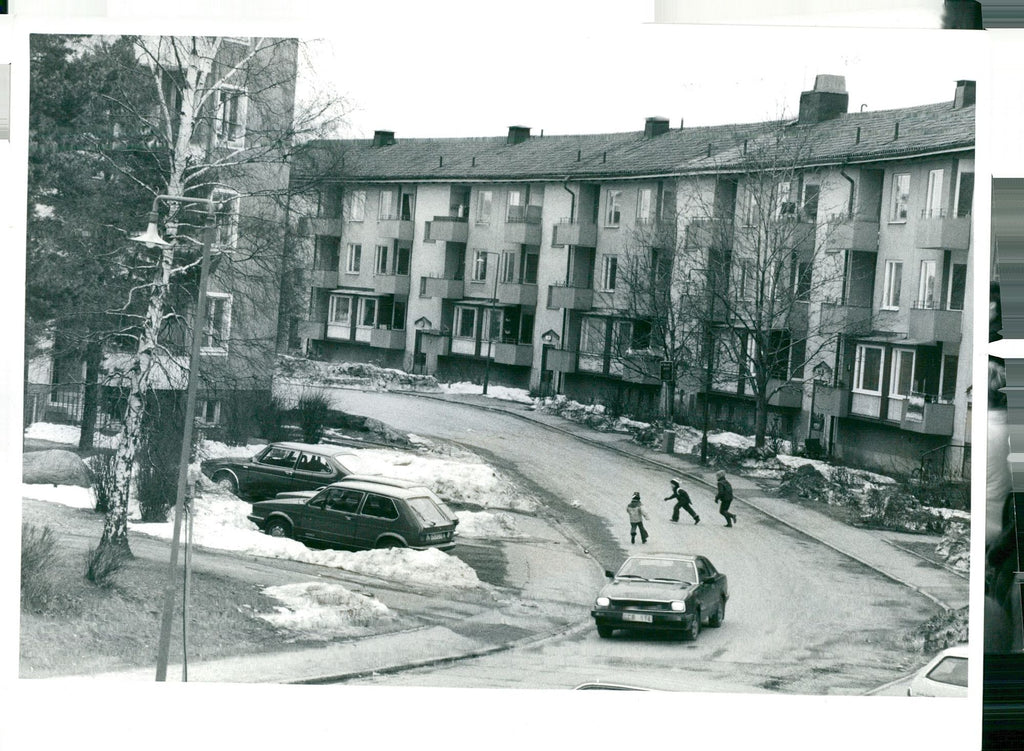 Bandhagen, Apartments, apartment houses, buildings, houses, roads, cars, trees, children,