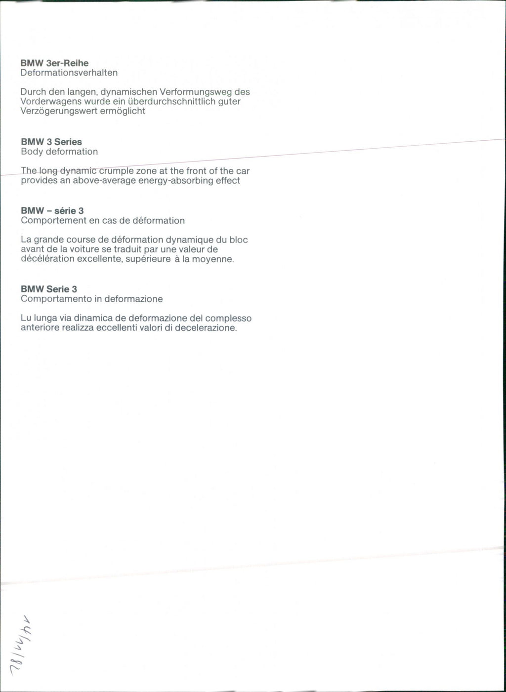BMW 3 Series Body deformation The long dynamic crumple zone at the front of the car provides an above-average energy-absorbing effect
