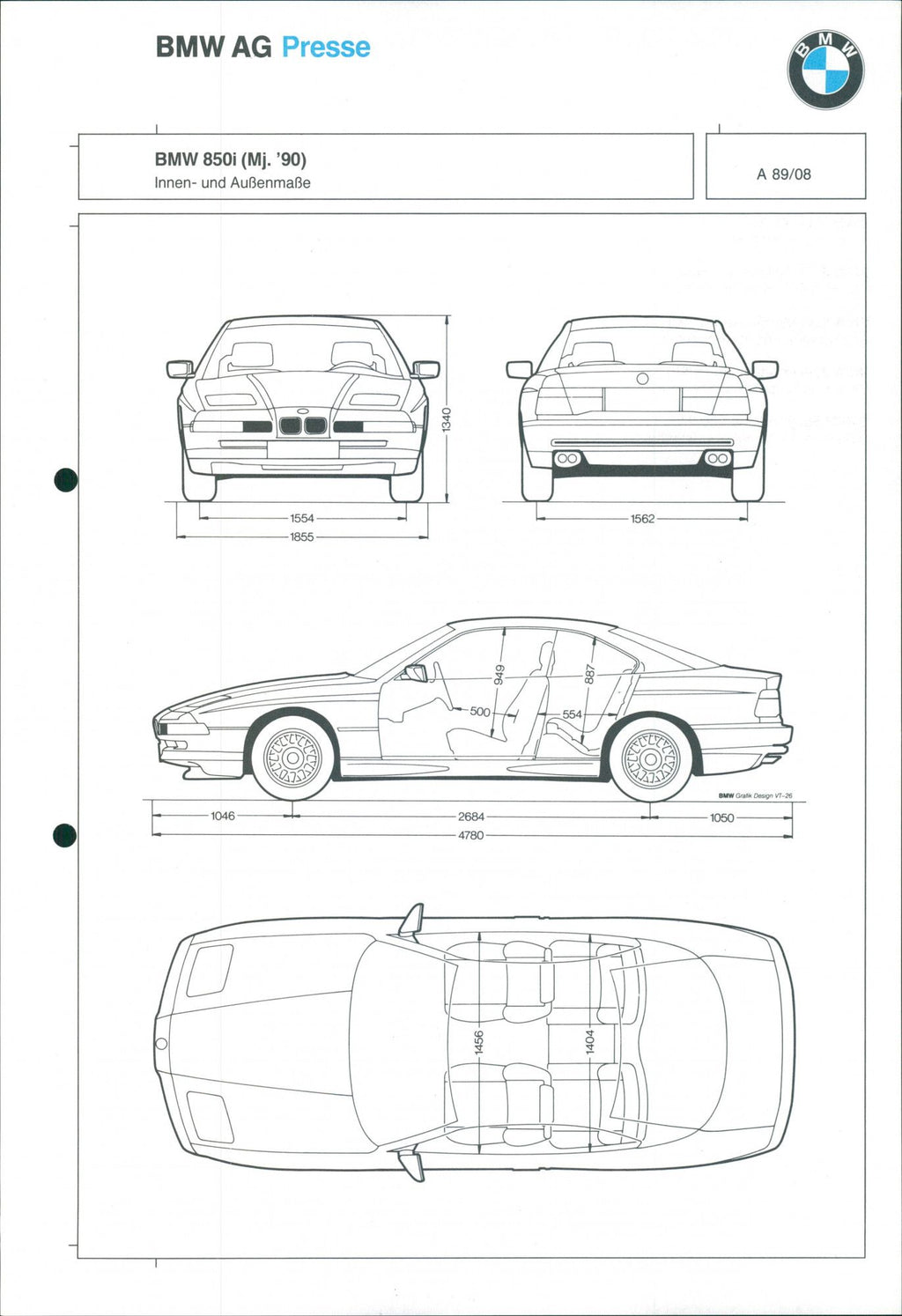 BMW 850i (1990 model year) Interior and exterior dimensions