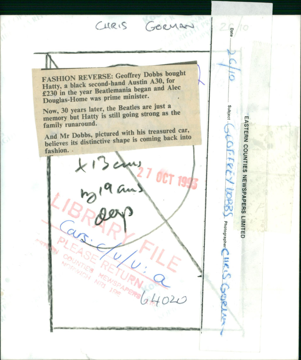 Geoffery Dobbs bough Hatty a black second hand Austin A30.