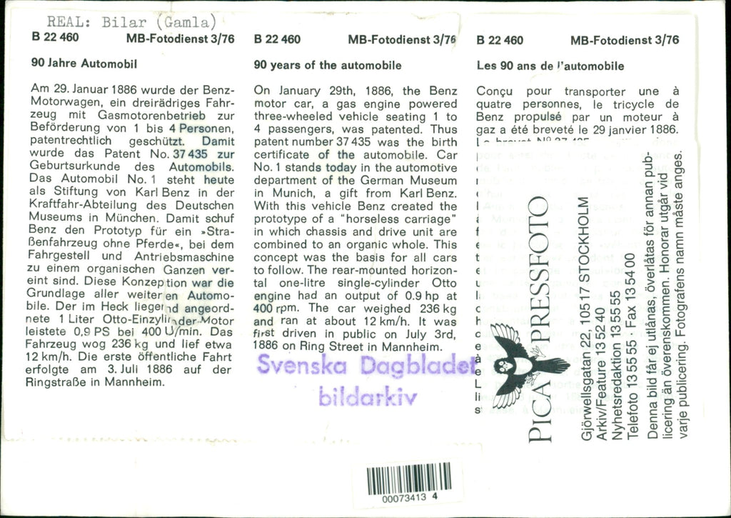 Cars : Old Cars, Benz Tricycle Propulsion - Vintage Photograph