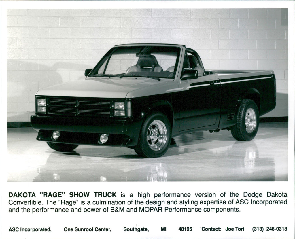 Dodge Dakota "Rage" show truck is a high performance version of the Dodge Dakota Convertible. The "Rage" is a culmination of the design and styling expertise of ASC Incorporated and the performance and power of B&M and MOPAR Performance components.