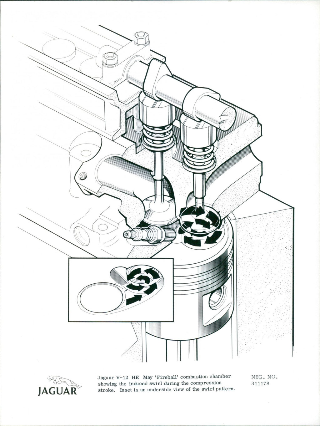 Jaguar V-12 HE May Fireball Combustion Chamber showing the induced swirl during the compression stroke