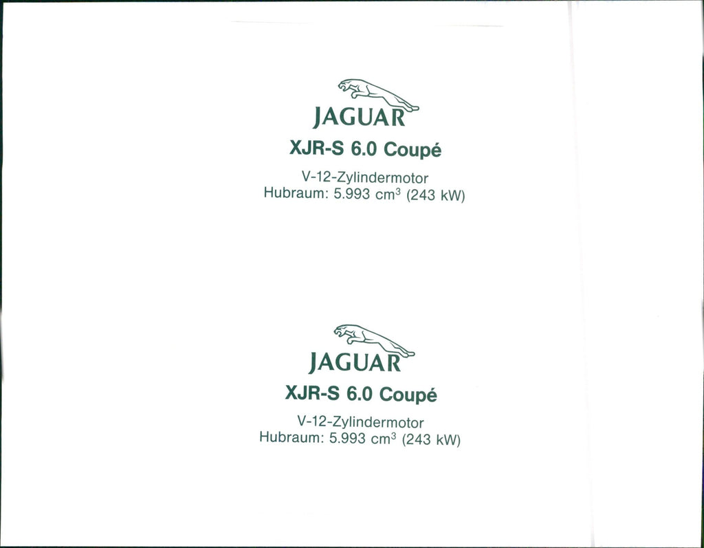 Jaguar XJR - S 6.0 Coupé V-12 cylinder engine displacement: 5,993 cm³ (243 kW)