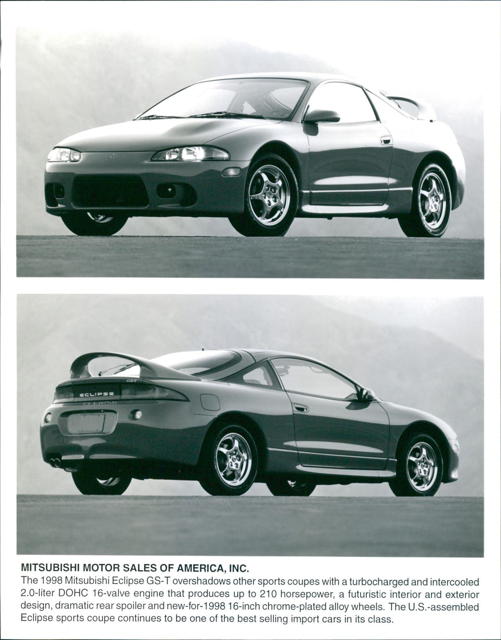 The 1998 Mitsubishi Eclipse GS-T overshadows other sports coupes with a turbocharged and intercooled 2.0-liter DOHC 16-valve engine that produces up to 210 horsepower, a futuristic interior and exterior design, dramatic rear spoiler and new-for-1998 16-inch chrome-plated alloy wheels.