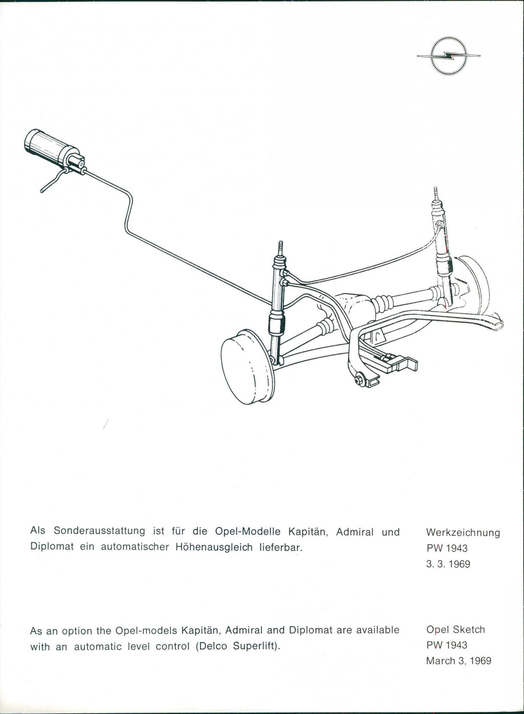 Automatic height compensation is available as an option for the Opel models Captain, Admiral and Diplomat work drawing.
