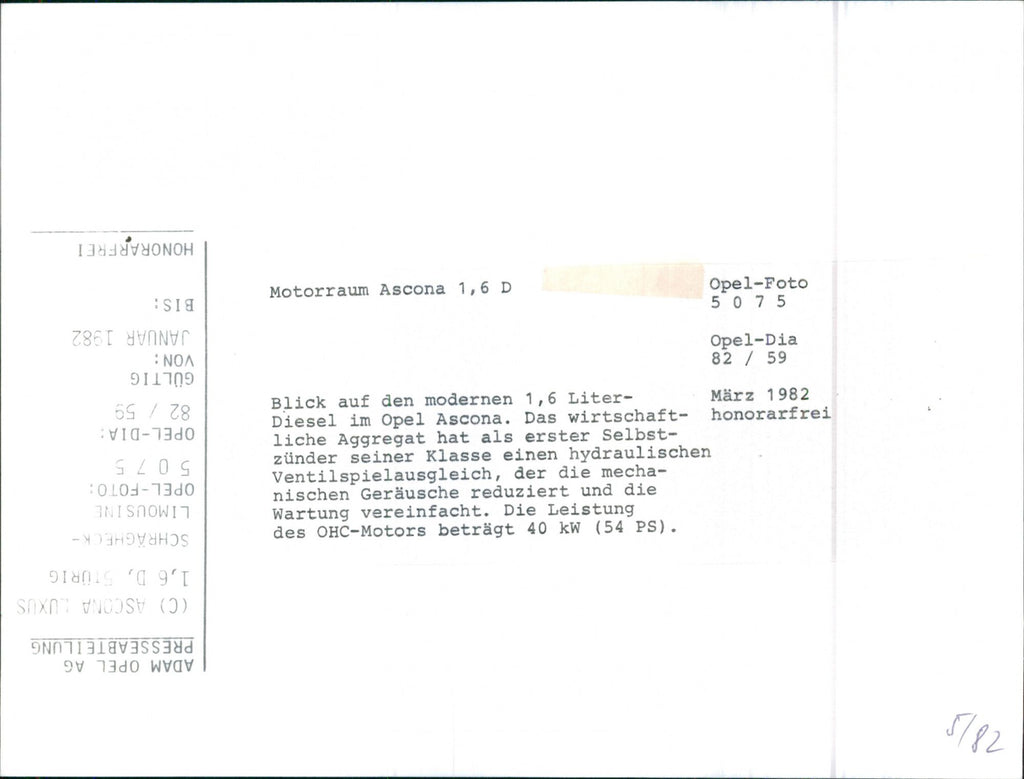 Opel Ascona engine compartment 1.6. Liter-Diesel - Vintage Photograph