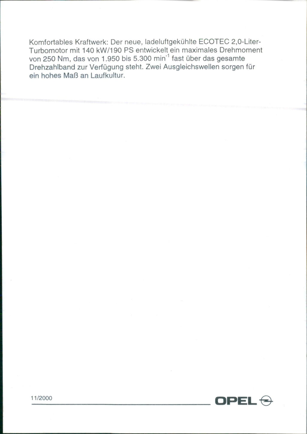 Opel Coupe, the new, charge-air-cooled ECOTEC 2.0-liter turbo engine with 140 kW / 190 PS develops a maximum torque of 250 Nm, which is available from 1,950 to 5,300 min 'over almost the entire speed range. Two balance shafts ensure a high level of smoothness.