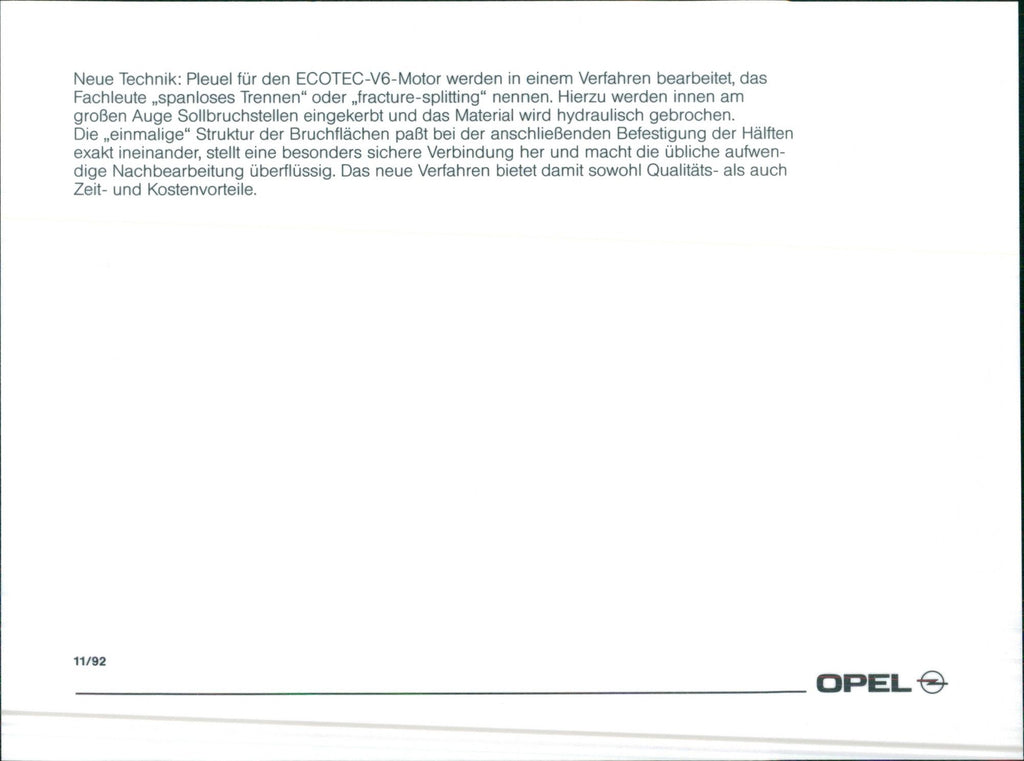 New technology: connecting rods for the ECOTEC V6 engine are processed in a process that experts call "chipless separation" or "fracture splitting".