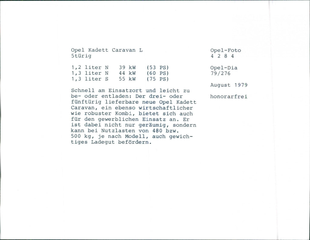 The new five-door Opel Kadett Caravan L, which can be delivered free of charge, is an economical and robust station wagon, and is also suitable for commercial use.