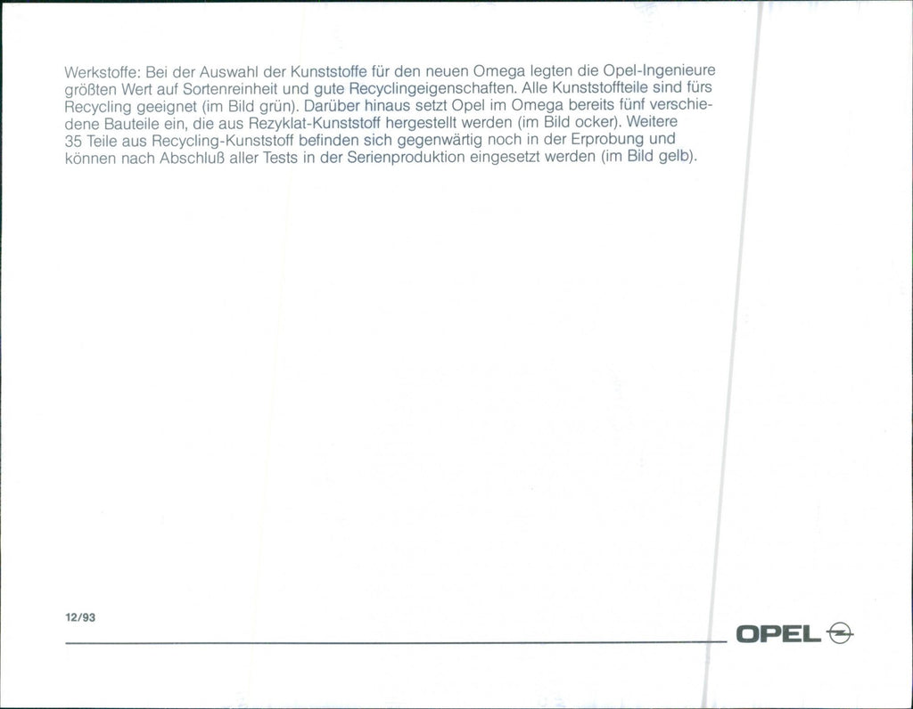 When choosing the plastics for the new Omega, the Opel engineers placed great emphasis on purity of the variety and good recycling properties. All plastic parts are suitable for recycling (green in the picture).