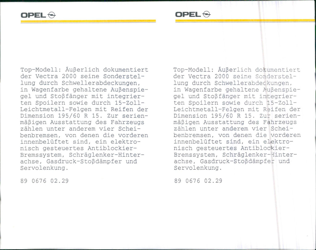 : The exterior of the Vectra 2000 documents its special position with sill covers, body mirrors in body color and bumpers with integrated spoilers as well as 15-inch light-alloy rims with 195/60 R 15 tires