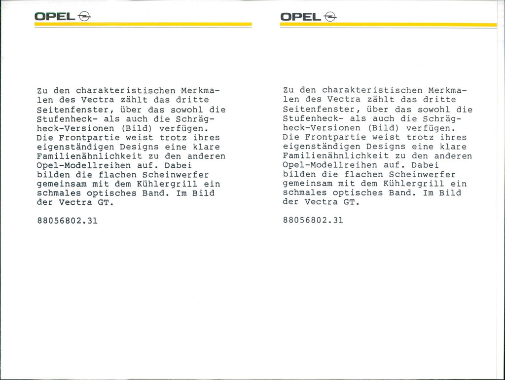 One of the characteristic features of the Vectra is the third side window, which both the notchback and the hatchback versions (image) have. Despite its unique design, the front section has a clear family resemblance to the other Opel model series.