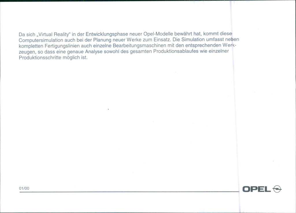 Since "Virtual Reality" has proven itself in the development phase of new Opel models, this computer simulation is also used when planning new plants.