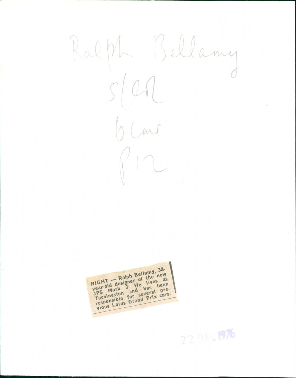 Ralph Bellamy, the designer of the new JPS Mark 3. He lives at Tacolneston and has been responsible for several previous Lotus Grand Prix cars.