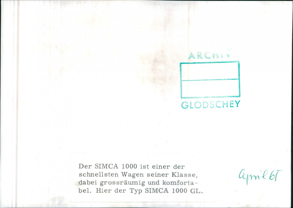 The Simca 1000 is one of the fastest cars in its class, yet it is spacious and comfortable. Here the type Simca 1000 GL,