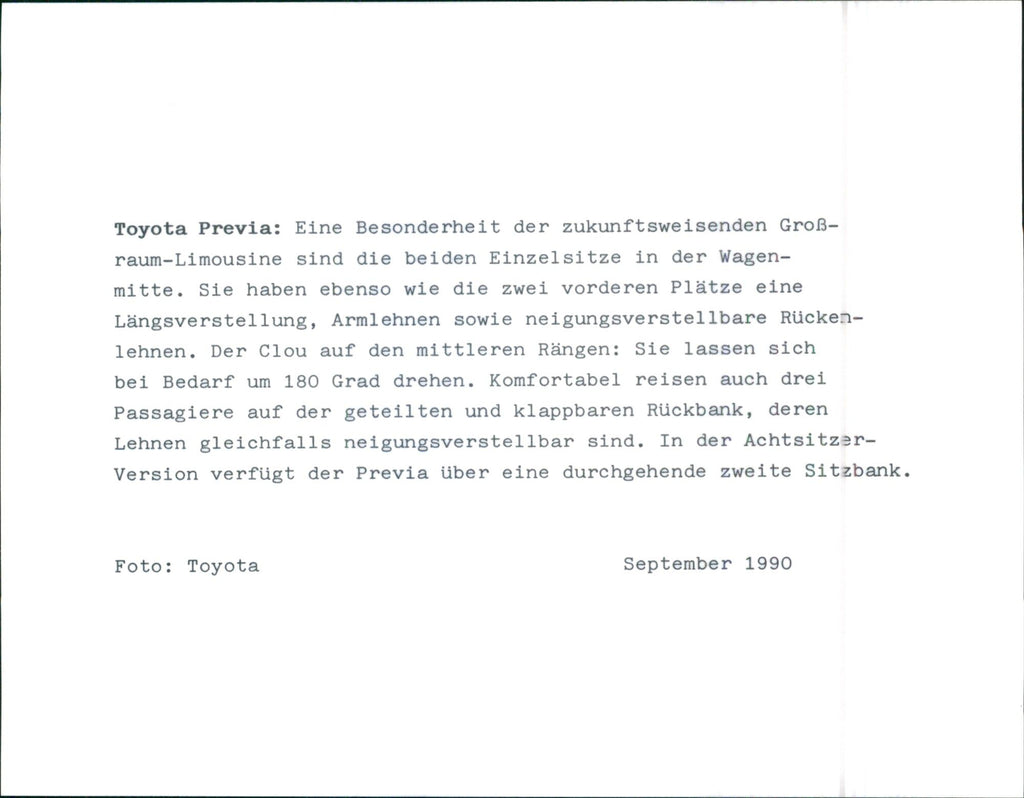 Toyota Previa: The two individual seats in the center of the car are a special feature of the trendsetting open-plan sedan. Like the two front seats, they have length adjustment, armrests and reclining backrests.
