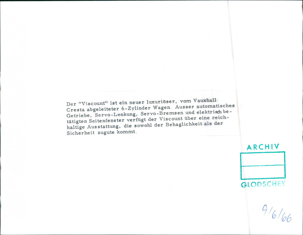 The "Viscount" is a new luxurious 6-cylinder car derived from the Vauxhall Cresta. In addition to the automatic gearbox, servo steering, servo brakes and electrically operated side windows, the Viscount has a wide range of equipment that benefits both comfort and safety.