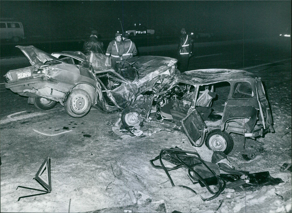 Violent collision between two passenger cars on the E4 near Rönninge traffic jam - Vintage Photograph