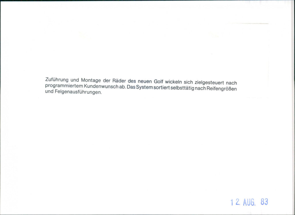 Feeding and assembly of the wheels of the new Golf take place in a targeted manner according to the programmed customer request. The system automatically sorts according to tire sizes and rim designs.