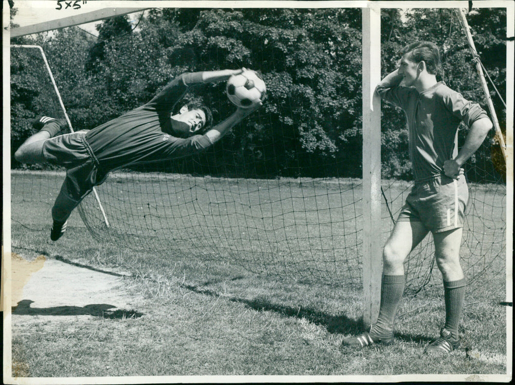 In action is Peter Bonetti and watching his is Alex Stepney. In action is Peter Bonetti and watching his is Alex Stepney.