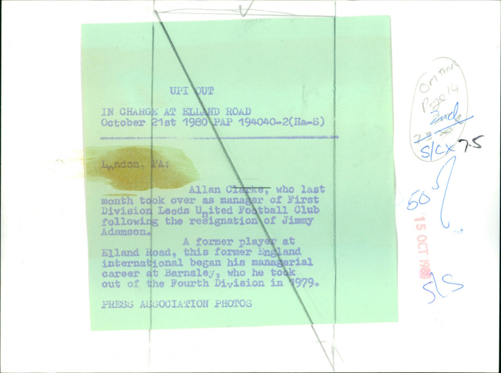 Allan Clarke took over as manager of First Division Leeds United Football Club. Allan Clarke took over as manager of First Division Leeds United Football Club.