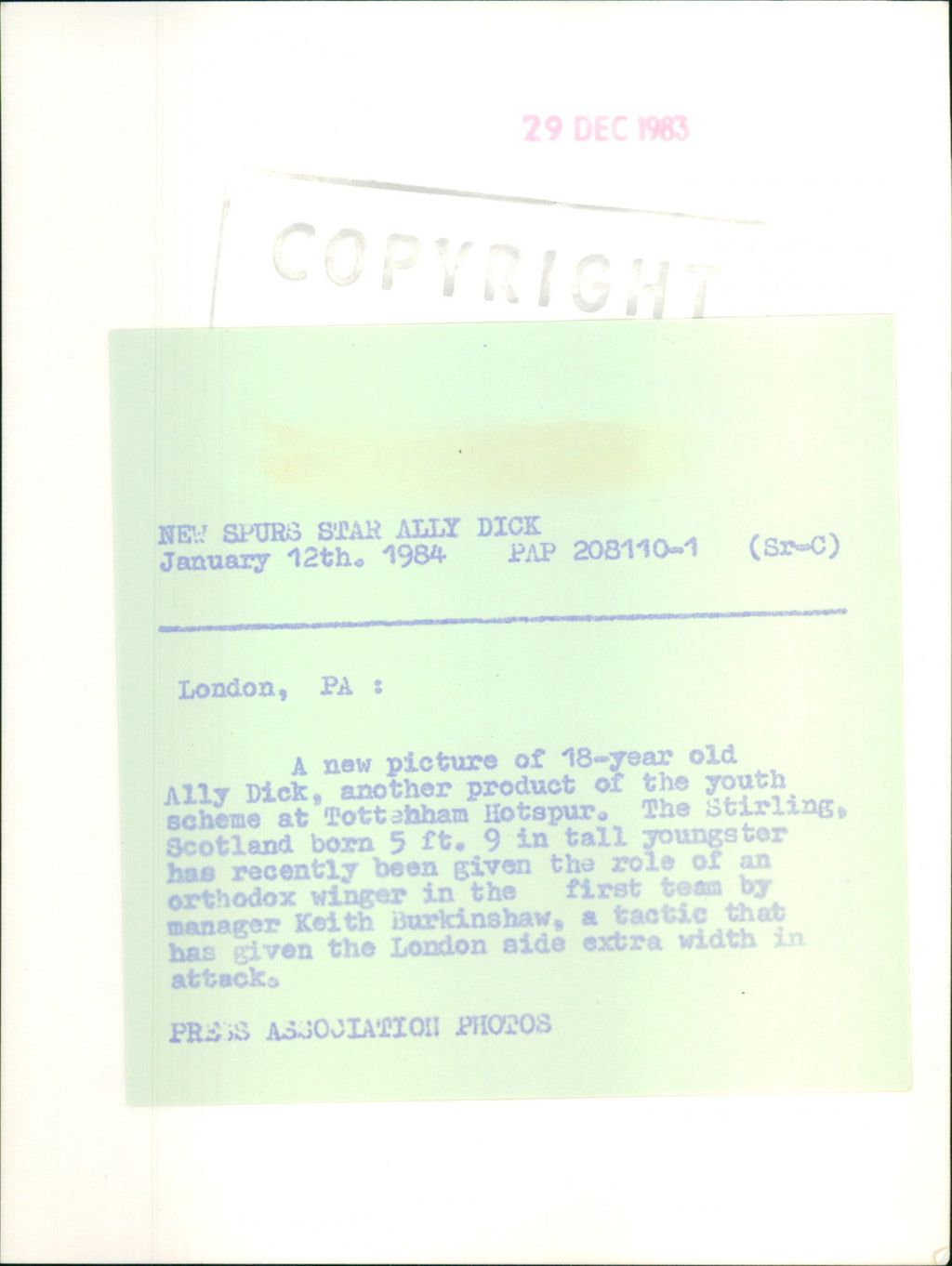 All our press photos are LIMITED ARCHIVE ORIGINALS - they are the actual prints that were used by the newspapers, they are not reprints or digital prints produced by us. All the prints are at least 30 years old and up to 100 years old.