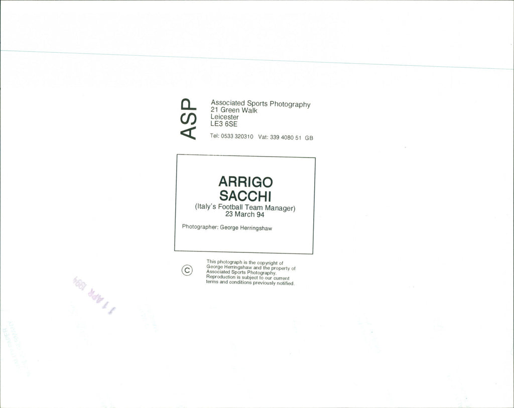 Arrigo Sacchi of Italy's Football Team manager. Arrigo Sacchi of Italy's Football Team manager.