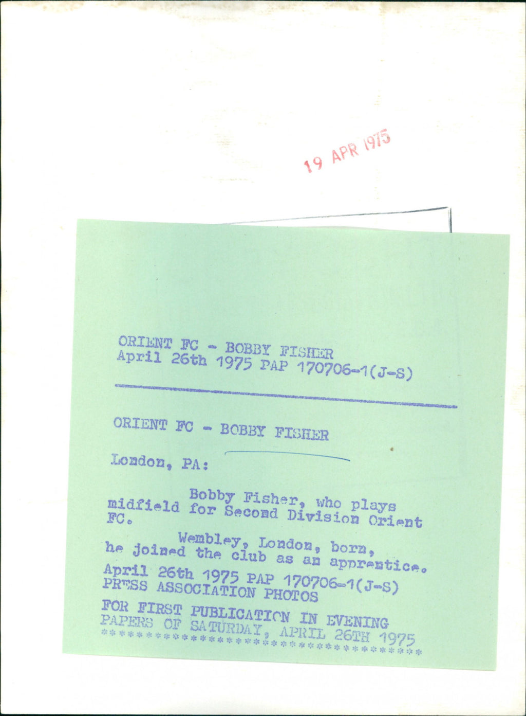 All our press photos are LIMITED ARCHIVE ORIGINALS - they are the actual prints that were used by the newspapers, they are not reprints or digital prints produced by us. All the prints are at least 30 years old and up to 100 years old.
