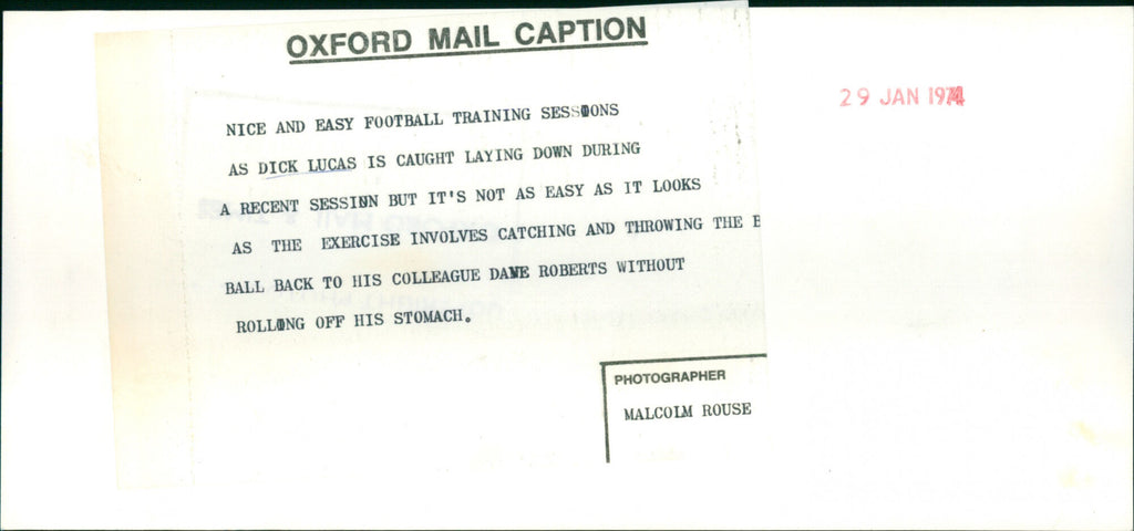 Nice and easy football training sessions as Dick Lucas is caught laying down during a session but it's not as easy as it looks as the exercise involves catching and throwing the ball back to his colleague Dave Roberts without rolling off his stomach. Nice and easy football training sessions as Dick Lucas is caught laying down during a session but it's not as easy as it looks as the exercise involves catching and throwing the ball back to his colleague Dave Roberts without rolling off his stomach.