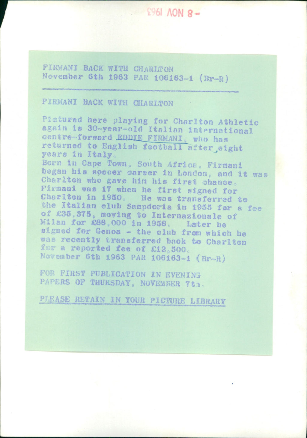 All our press photos are LIMITED ARCHIVE ORIGINALS - they are the actual prints that were used by the newspapers, they are not reprints or digital prints produced by us. All the prints are at least 30 years old and up to 100 years old.
