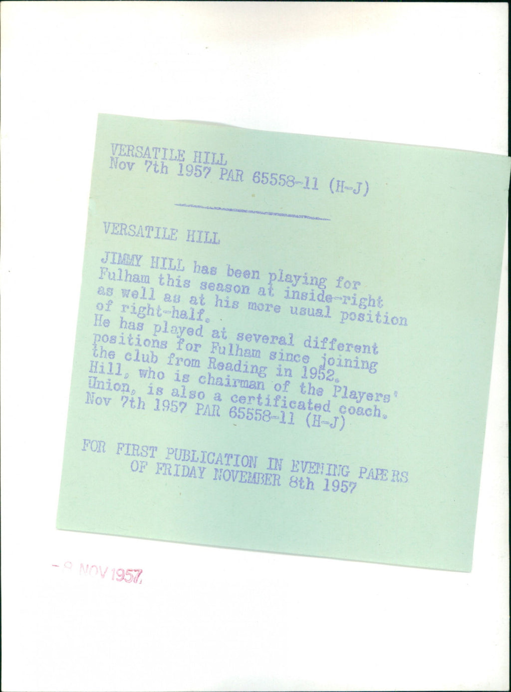 Jimmy Hill has been playing for Fulham Jimmy Hill has been playing for Fulham