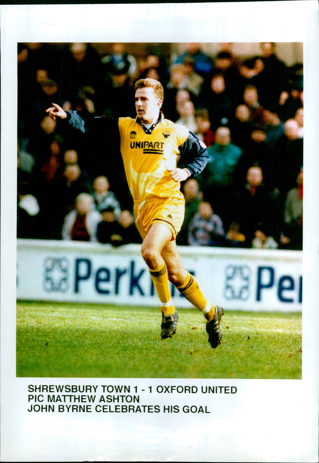 Shrewsbury Town 1-1 Oxford United. John Byrne celebrates his goal. Shrewsbury Town 1-1 Oxford United. John Byrne celebrates his goal.